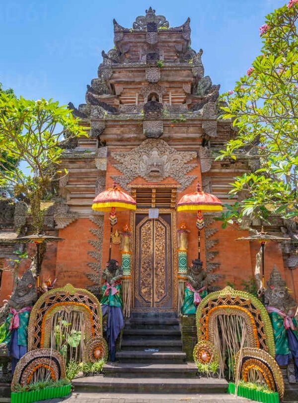Next, head over to Ubud Palace (also called Puri Saren) and the Ubud Market, just across the main street. This is a fantastic place to dive into Ubud’s culture and pick up some unique Bali souvenirs to bring home.
